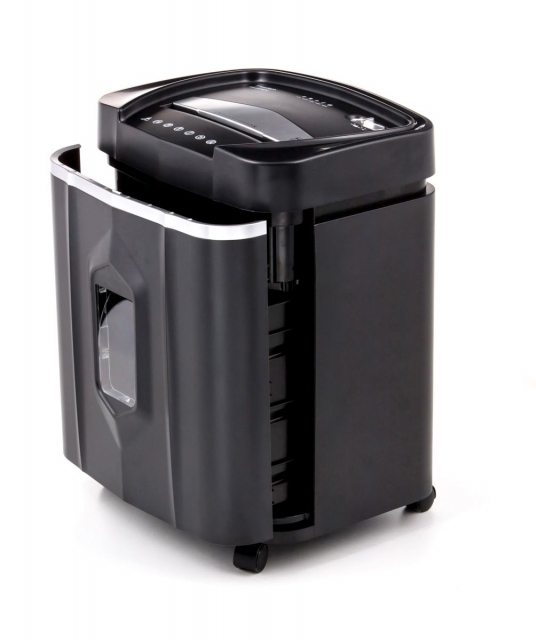 - niszczarka wyposażona jest w czujnik otwartego kosza (urządzenie przestaje pracować w momencie otwarcia pojemnika na ścinki)
